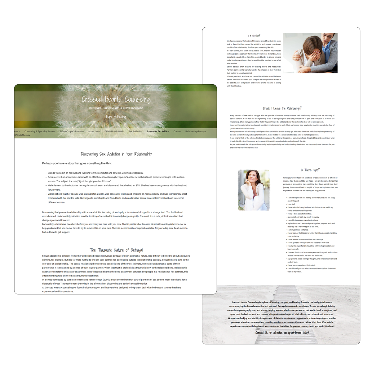 Laura Potter is the founder of Crossed Hearts Counseling. She is also a Licensed Professional Counselor with post-graduate education and training as a Licensed Clinical Pastoral Counselor. Laura works with both men and women singles and couples struggling with sex addiction, pornography and infidelity.